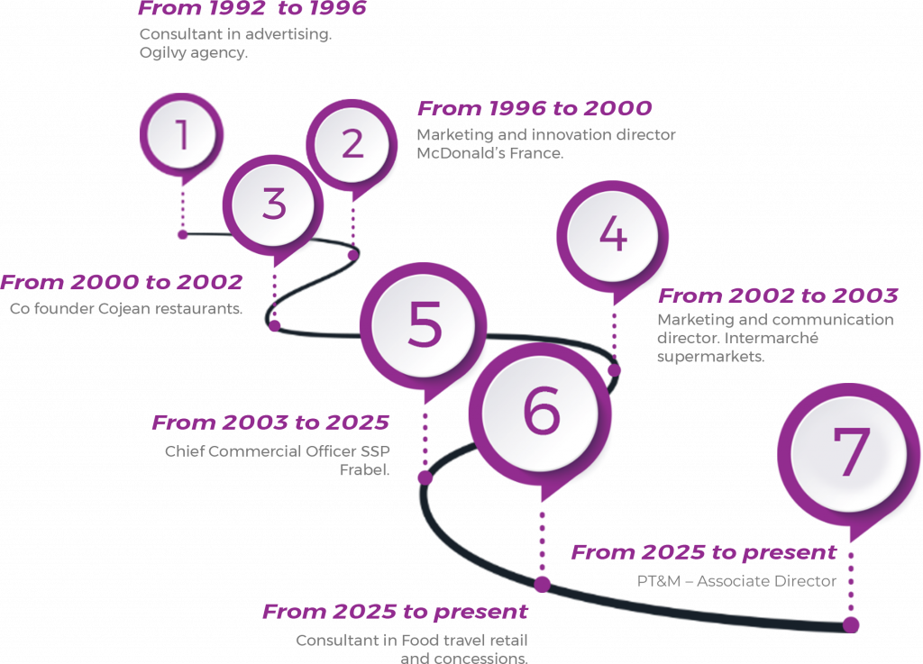 Over 30 years in F&B, expert in development and innovation. Co-founder of Cojean and former SSP leader, he drove major growth, concept creation, and brand partnerships. He now advises brands and concessionaires on development strategy and tender management.